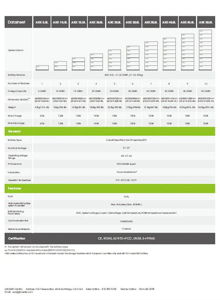 | Growatt AXE 5.0L-C1 5kW Battery | Details |
