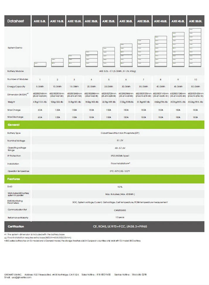 Growatt AXE 5.0L-C1 5kW Battery Details