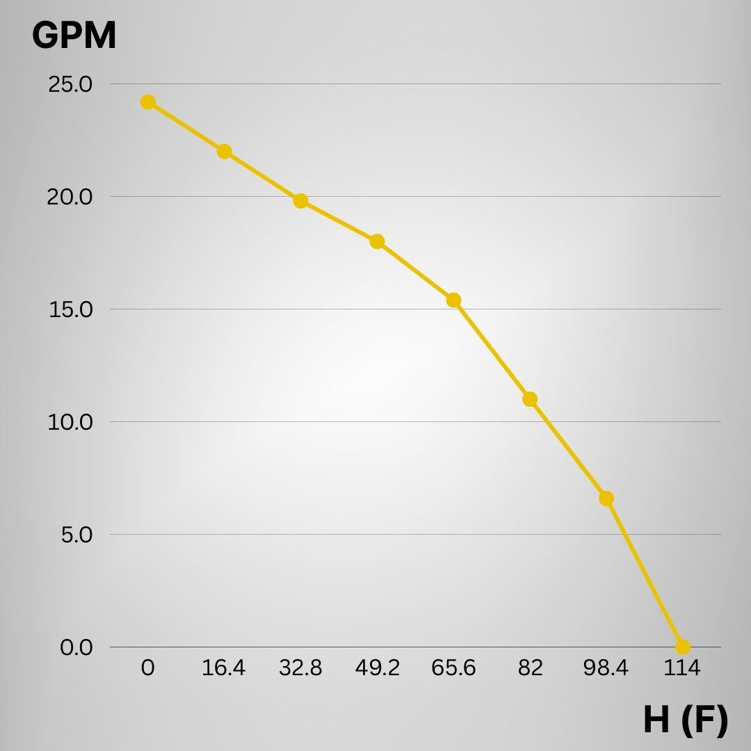 - Powerful Performance: Max flow rate of 24.2GPM and max head of 98 feet..