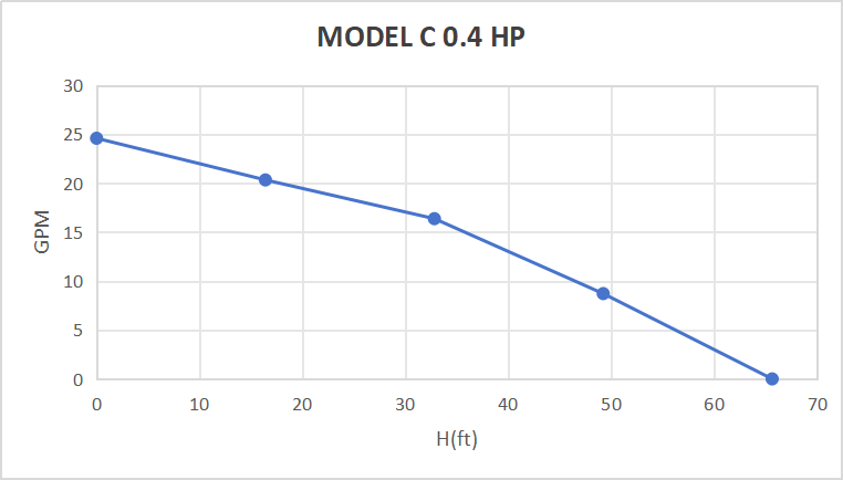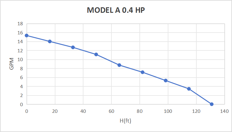 - Performance Metrics: Flow rates from 15.3 GPM at minimal head height to zero at the maximum of 130.4 feet. Graduated performance ideal for varied applications.