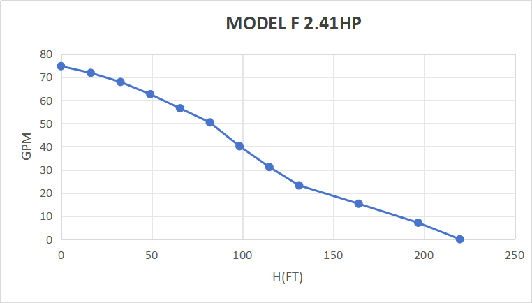 - Performance Metrics: Flow rates from 16.12 GPM at minimal head height to zero at the maximum of 574 Ft. Graduated performance ideal for varied and demanding applications.