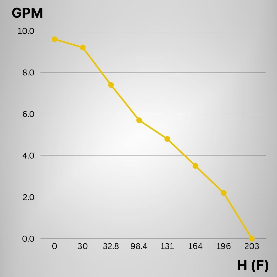 - Max Head: Capable of elevating water up to 203 ft, suitable for a variety of installation environments.